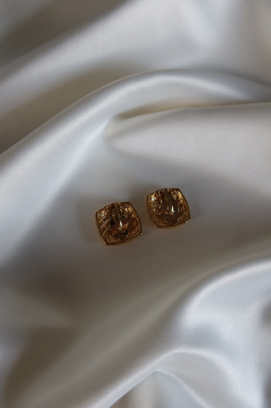 Non Signé - Gold Tone Textured Clip On Earrings