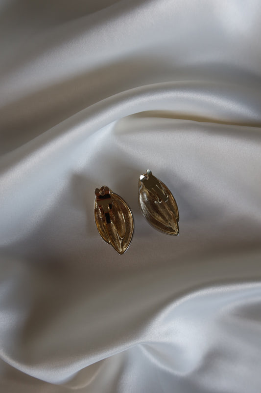 Non Signé - Two Tone Textured Clip On Earrings (XL)